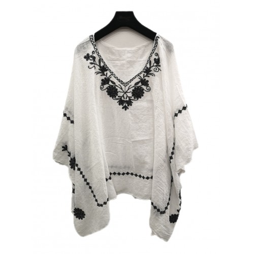 Poncho été Broder noir / blanc