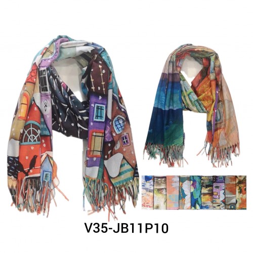 écharpe imprimé paysage peinture double face V35 JB11P10